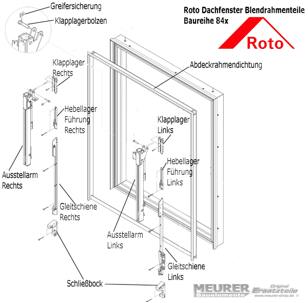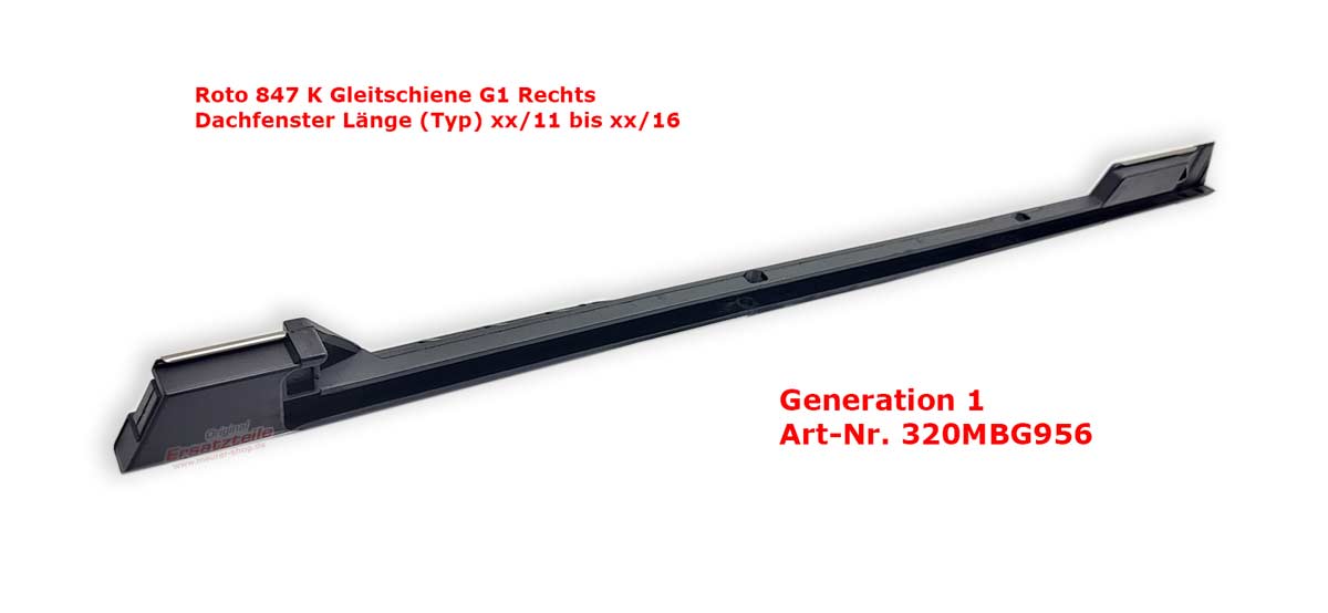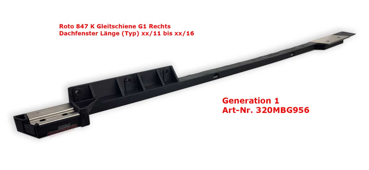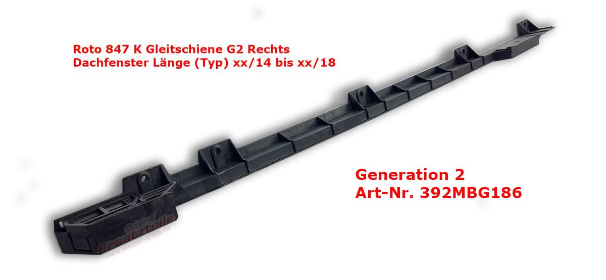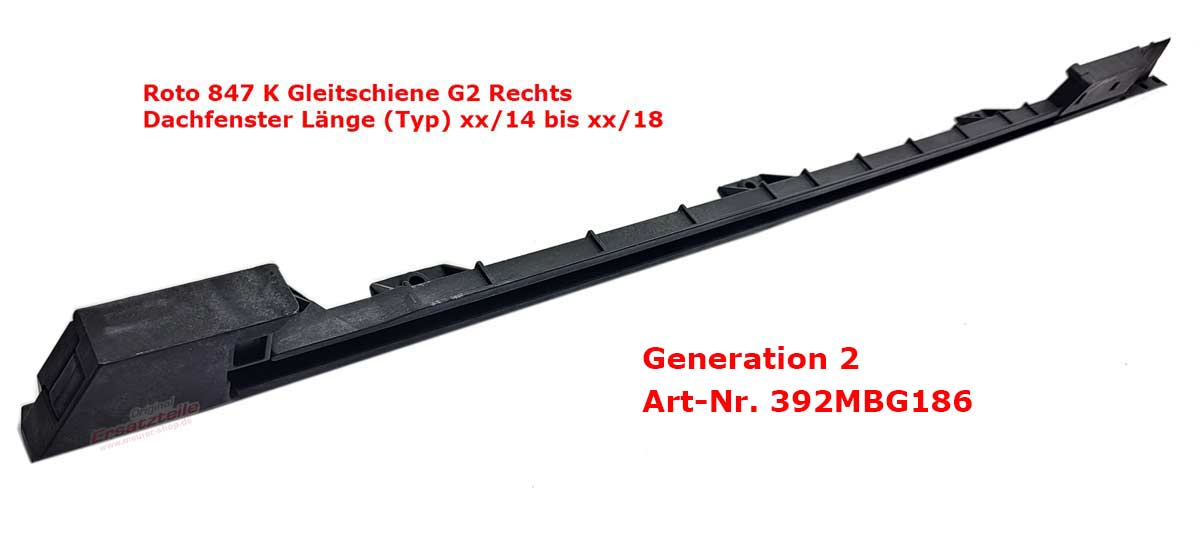 nachfolgend als Beispiel, Gleitschiene Rechts für Roto 84x Kunststoff Dachfenster G1 (erste Generation)