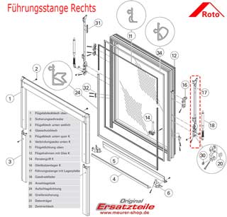Flügelarm Rechts Roto Kunststoff Dachfenster 73x & R7x Führungsstange mit Lagerplatte