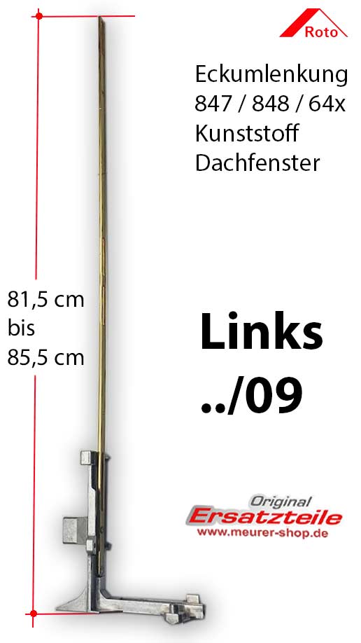 Eckumlenkung Links .../09 (98 cm) für Roto Kunststoff Dachfenster Baureihe 847 / 848 und 64x