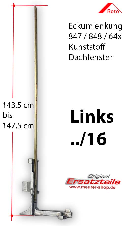 Eckumlenkung Links .../16 (160 cm) für Roto Kunststoff Dachfenster Baureihe 847 / 848 und 64x