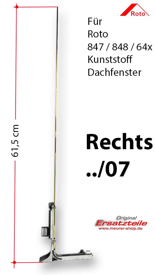 Eckumlenkung Rechts .../07 (78cm) für Roto Kunststoff Dachfenster Baureihe 847 / 848 und 64x