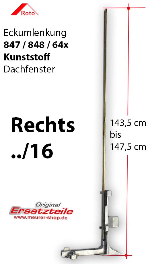 Eckumlenkung Rechts .../16 (160 cm) für Roto Kunststoff Dachfenster Baureihe 847 / 848 und 64x
