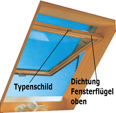 Die Fenstergröße steht auf dem Typenschild von Ihrem Dachfenster!