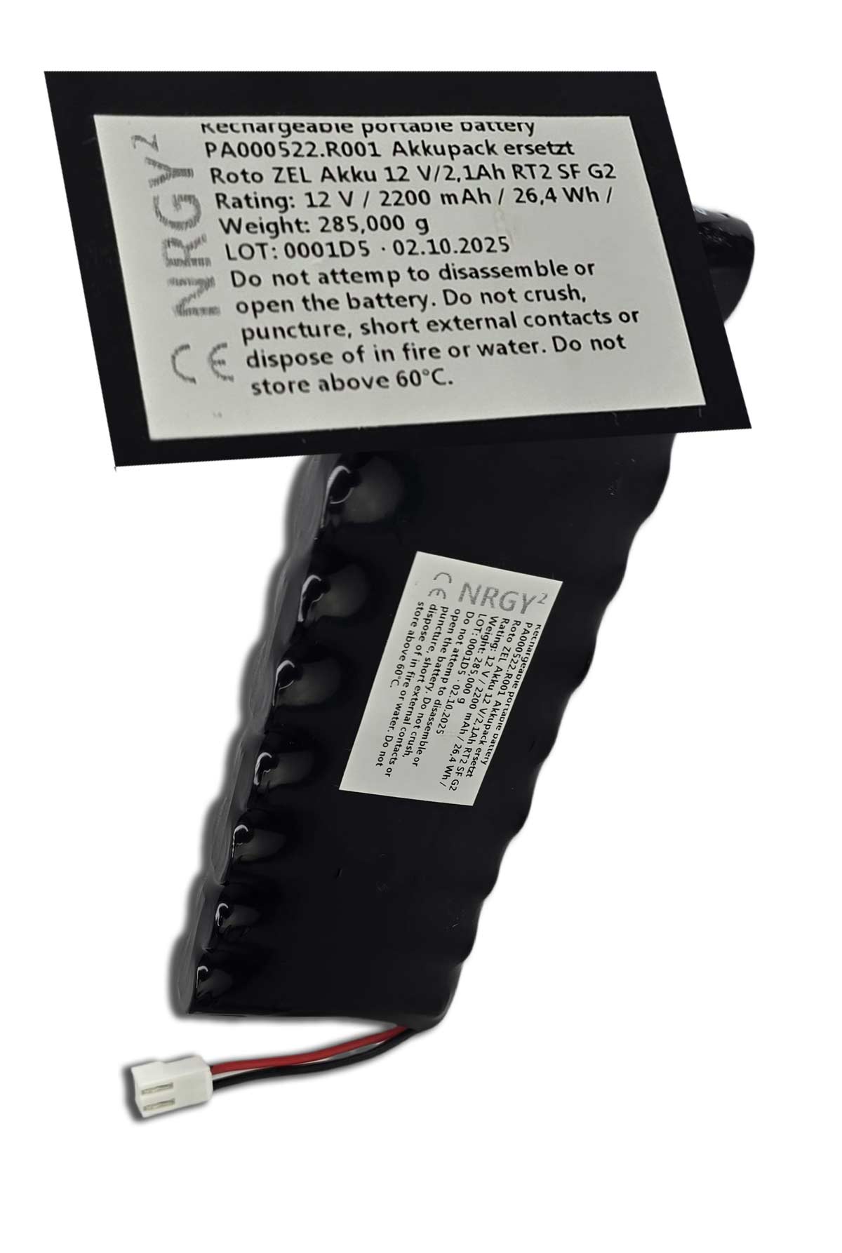 (der Original Roto Akku hat je nachdem welcher verbaut wurde nur 1800 bis max. 2000 mAh)