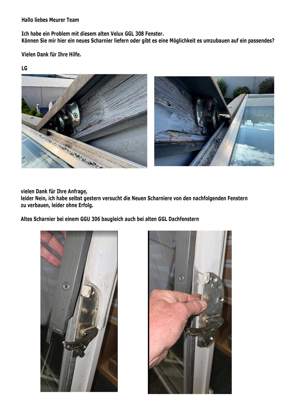 Hallo, mein Dachflächenfenster GGU 308 0073 braucht Neue Schaniere. Passen diese von ihnen?
