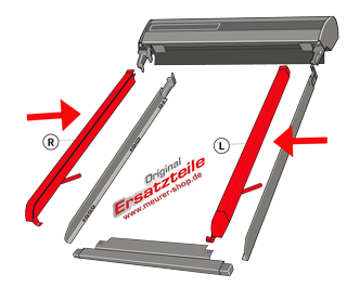 - 1 x Führungsschiene Rechts komplett inkl. ☞Rolladen Scharnier oben Rechts, und ☞Endkappe unten