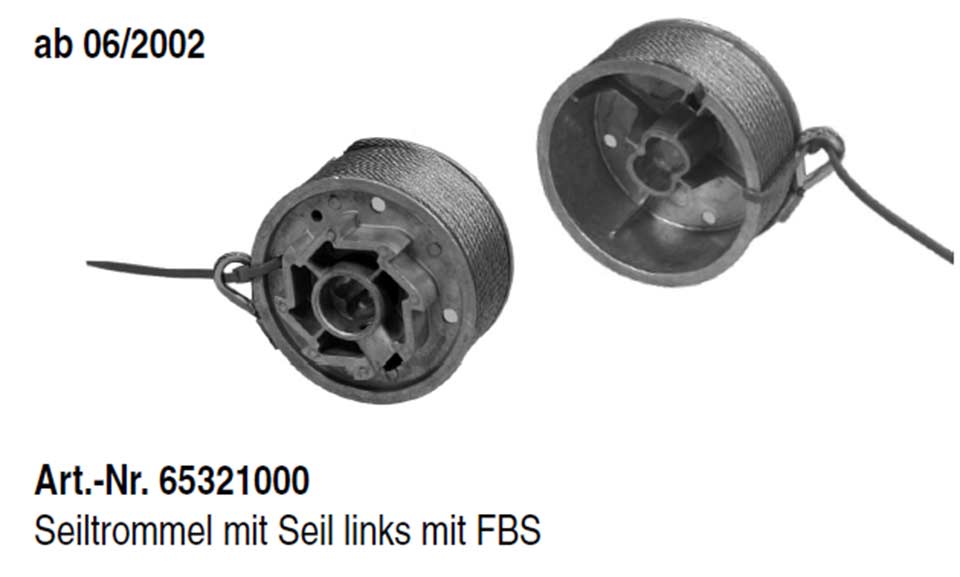 inkl. Drahtseil mit Kausche, für die Torsionsfederwelle, vorgerichtet zur Aufnahme der FBS (Federbruchsicherung)