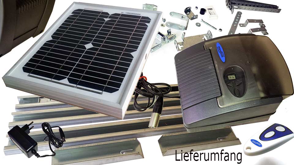 - Solarpaneel inkl. Montagematerial und Zuleitung zum Antrieb