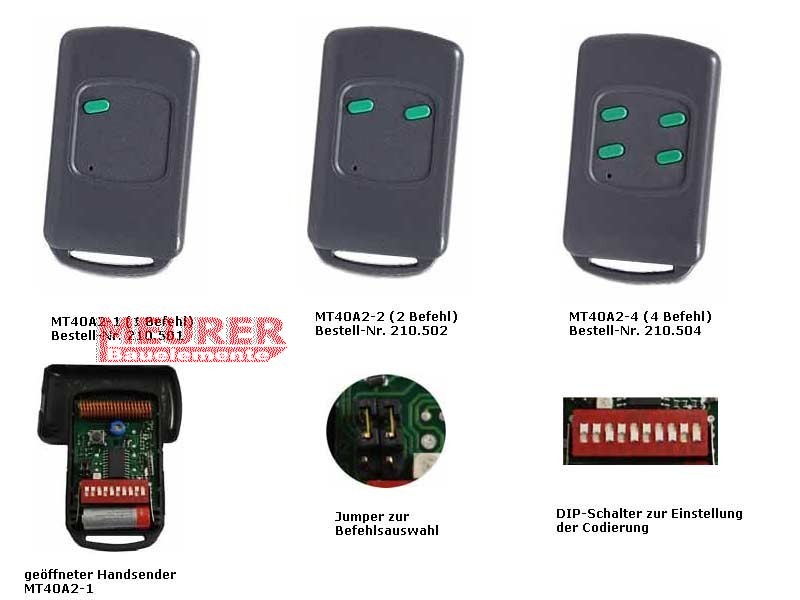 Ich habe 2 Rolltorsteuerungen ATS 47 3.1, für welche ich einen neuen Handsender brauchte. Der MTA40A2-2(2 Befehl) war genau der richtige. Dippschalter analog dem defekten Handsender eingestellt und schon liefen die Tore.