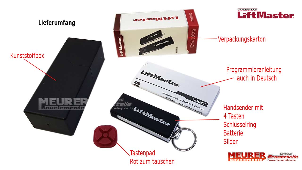 Original Liftmaster / Chamberlain Universal Funk Handsender TX4UNIS , 4-Kanal Funk-Handsender, elegantes Design, arbeitet auf 868 MHz