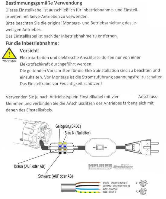 Einstellkabel für Motor vom Rolltor oder Rollladen/Jalousie Farhrkabel AUF / AB zum Testen