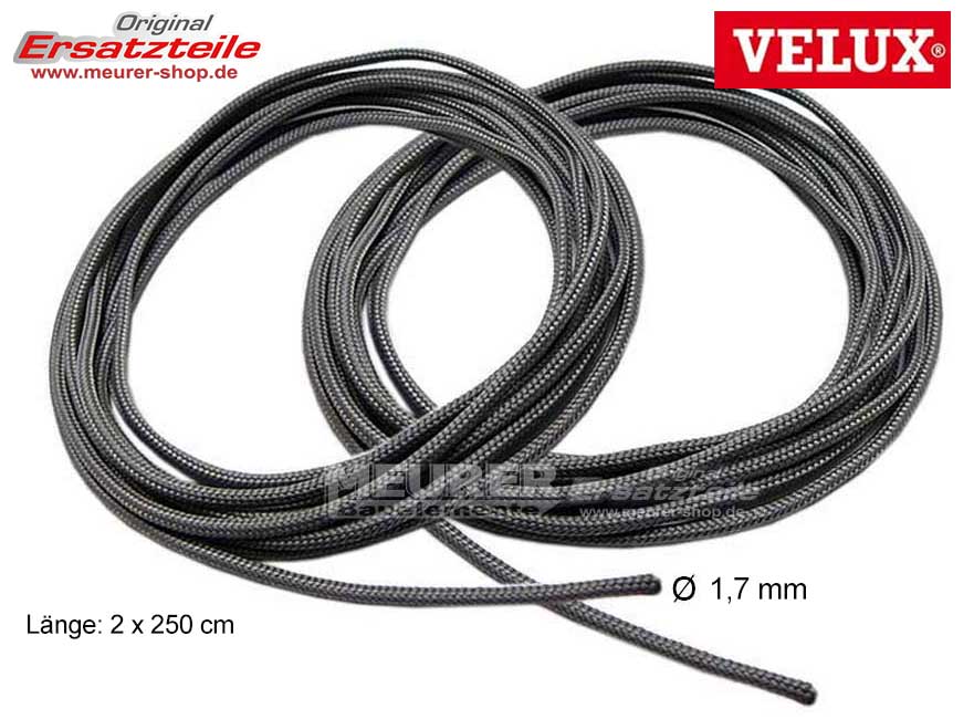 - 2 x Schnur, extrem reisfest UV-beständig in der Farbe Grau, (Länge ausreichend für alle Dachfenster Größen)