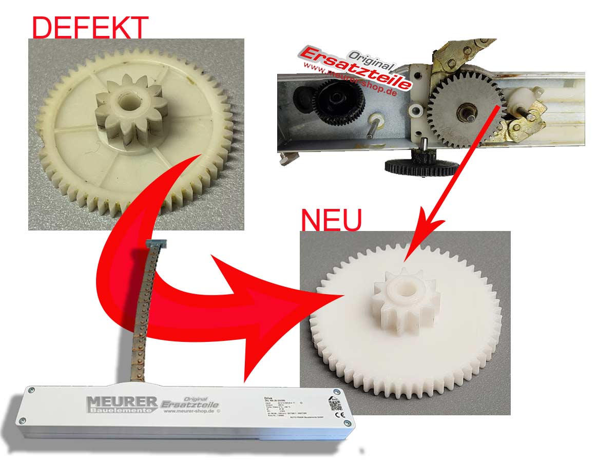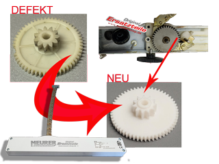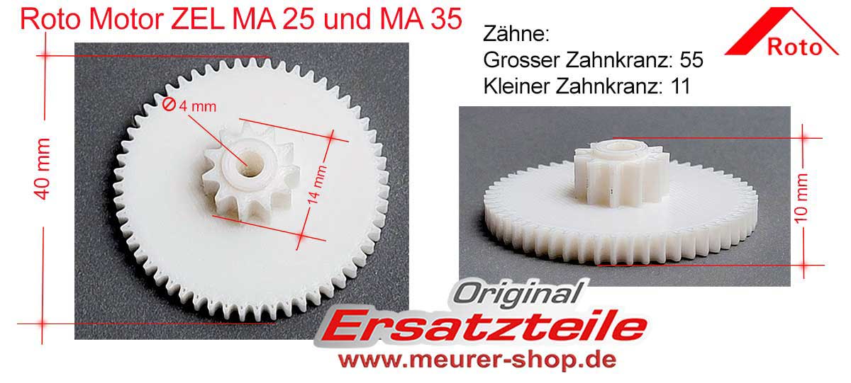 Wir haben dieses Ersatz Zahnrad-Ritzel für den Roto Fenstermotor MA 25 und MA 35 isnzwischen wieder aus dem Sortimemt genommen. Hält nicht so lange wie es sollte. Wir enmpfehlen den kompletten Motor zu erneuern: ☞ Roto Motorantrieb, Fensteröffner, Kettenmotor MA 25 N